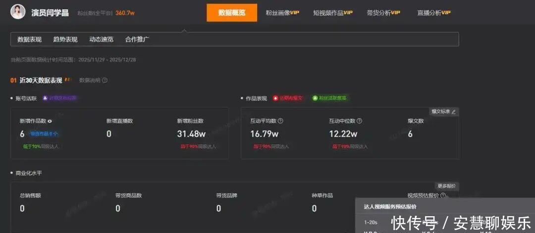 网友2024年发布闫学晶说“酸黄瓜”的视频据媒体2025年12月30日报道,近日,闫学晶在直播间透露32岁的儿子年收入仅几十万元,却需负担家庭年开支80-100万元,否则家庭无法运转,引发不少网友质疑与争议。闫学晶透露,儿媳妇为音乐剧演员,收入较低,和儿子两人年总收入不足40万元。儿子如果在电视剧行业坚守会很难,压力非常大,另外一个出路就是跑横店闯一闯。第三方平台数据显示,闫学晶的某社交平台账号名为“演员闫学晶”,近期新增了31.48万粉丝,总粉丝数为360.7万,其1到20秒视频广告预估报价7.3万元,21到60秒视频广告预估报价9.4万元,60秒以上视频广告预估报价为12万元。